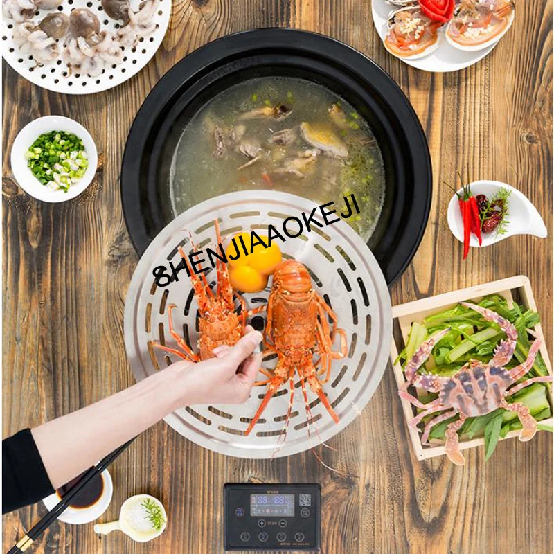 Special Offer Electric Steam Pot Slow Cooker Ceramic Steam Seafood Pot 3.5L/hour Ousehold Multifunctional Upper Steamed And Under Boiled 1pc Discount 15% Today!