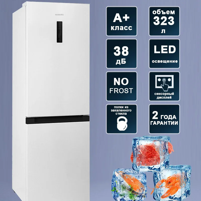 Special Offer Refrigerator Hiberg Rfc-330d NFW Bottom Freezer Nofrost 330L Height 186 Cm Class A + Touch Control 2 Drawers Discount 0% Today!