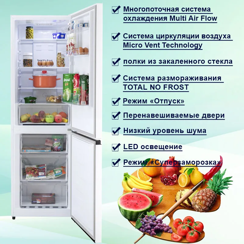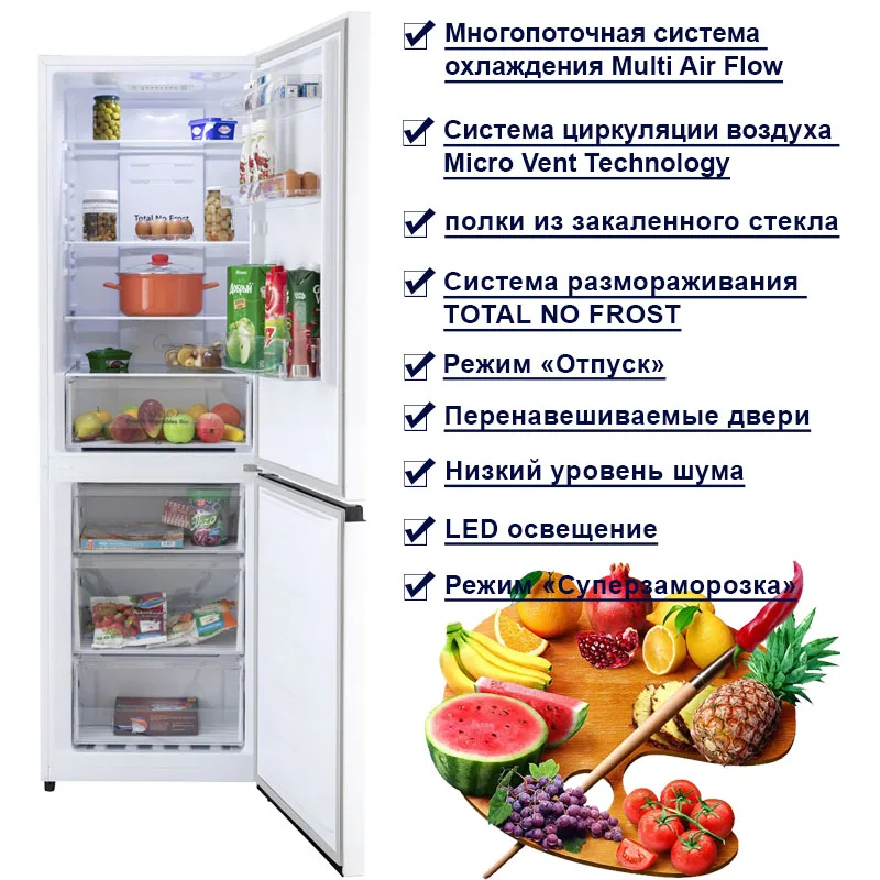 Special Offer Refrigerator Hiberg Rfc-330 NFW Bottom Freezer Nofrost 330L Height 186 Cm Class A + Touch Control 2 Drawers Discount 14% Today!