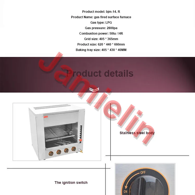 Product Name: Jamielin Commercial Gas Type Salamander Machine LPG Oven Desktop Chicken Roaster Salamander Grill 4 Infrared Stove FY-14.R