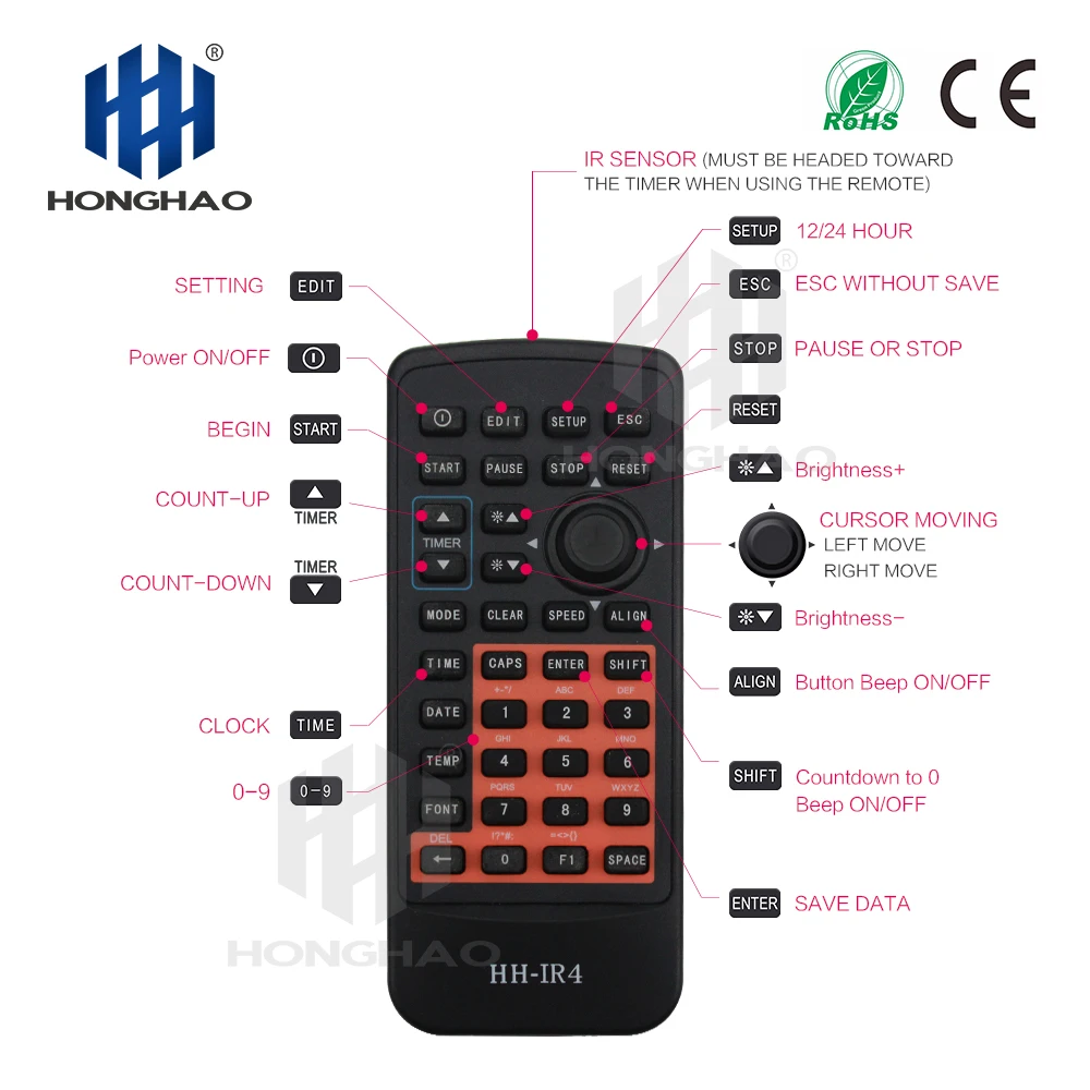Product Name: Honghao Red LED Large Sports Countdown Countup Stopwatch Timer For Event