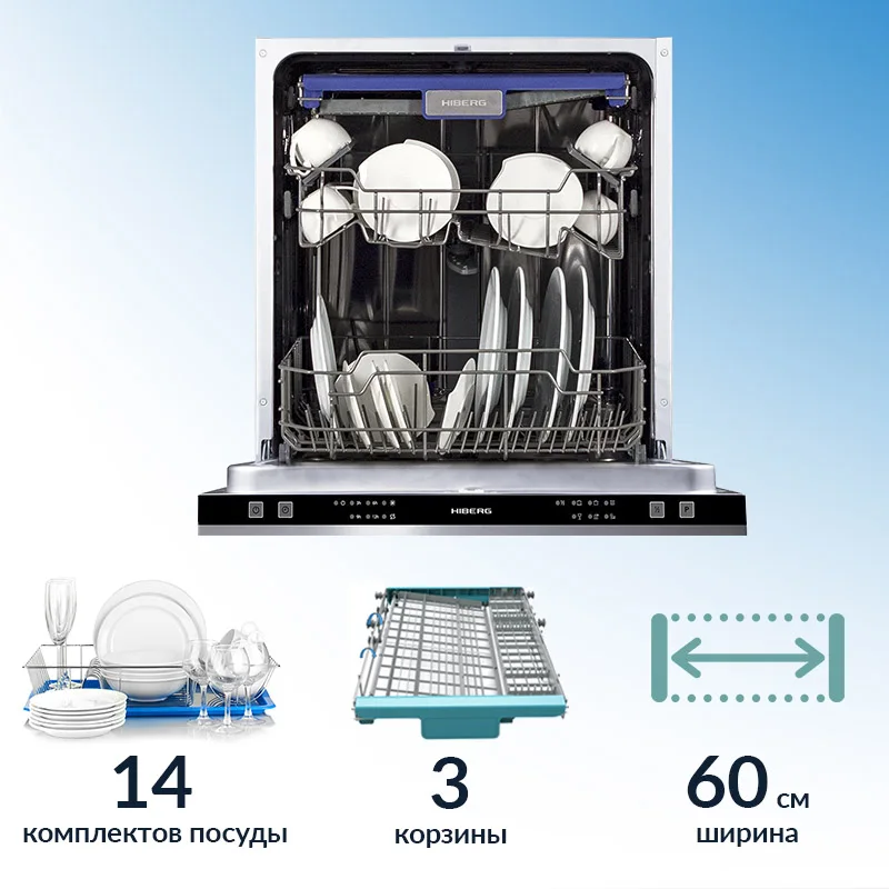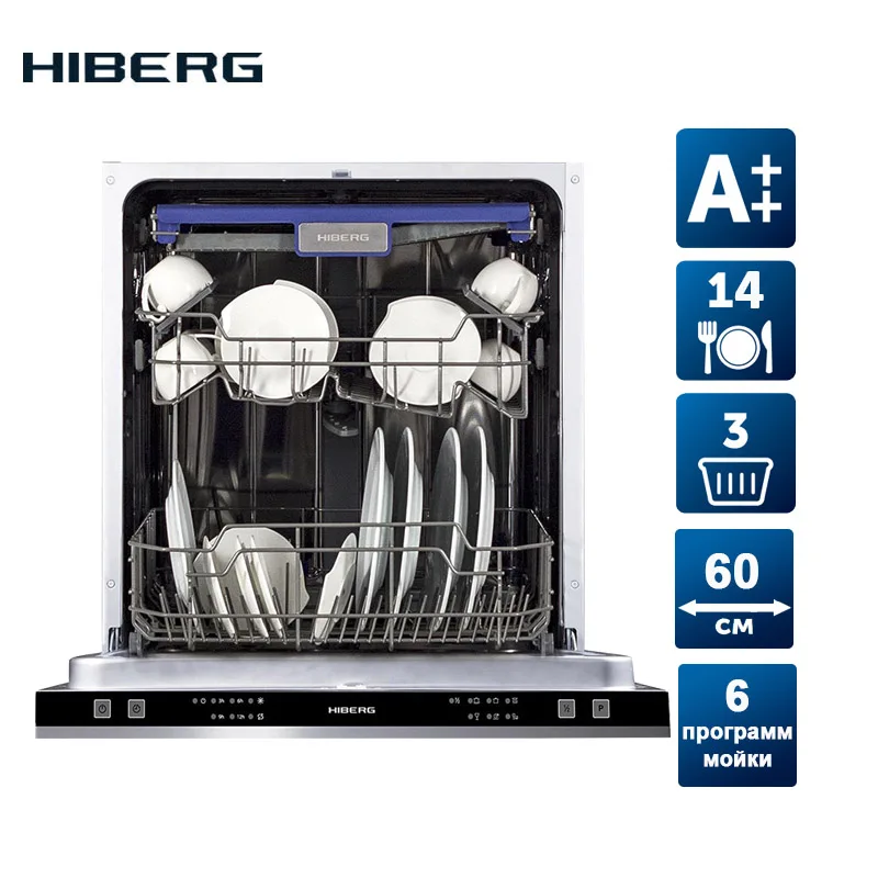 Special Offer Built-in Dishwasher HIBERG I66 1432 14 Sets 3 Baskets Aquastop 6 Programs Delay Up To 12 Hours Class A + Drying A Discount 0% Today!